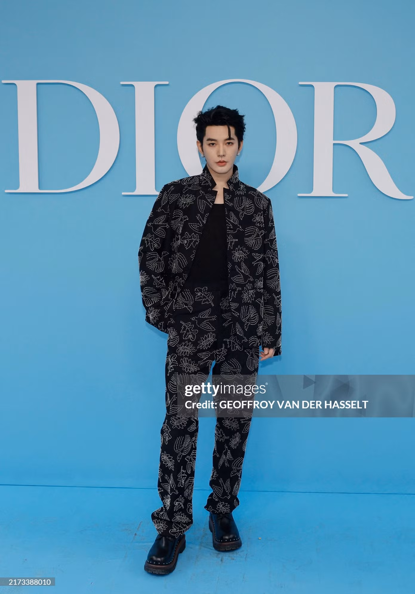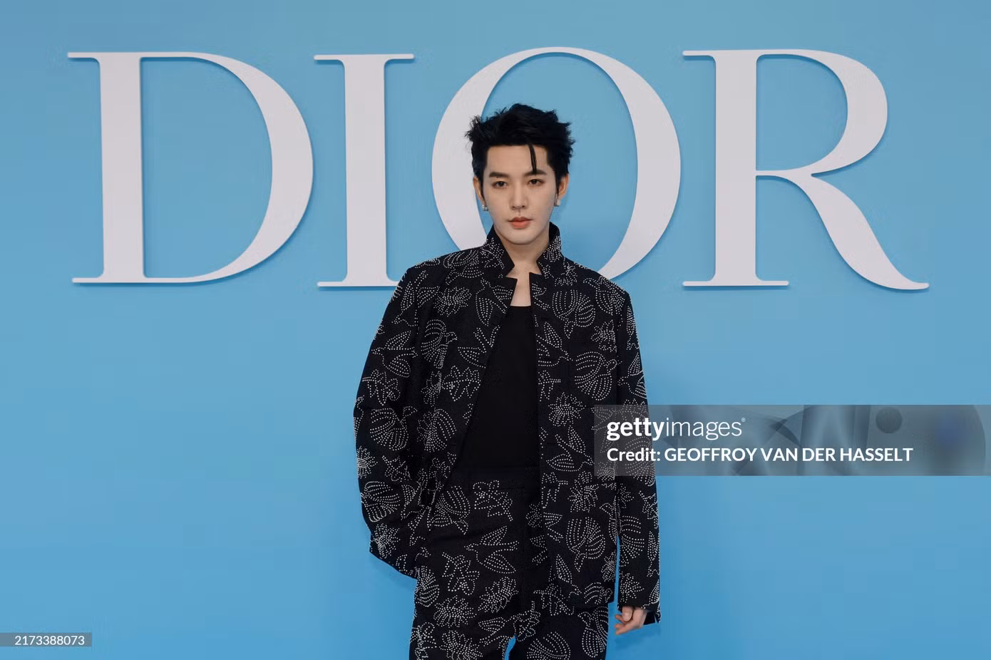 Đặng Vi thu hút ánh nhìn trong bộ âu phục đính kết bắt mắt. Thiết kế là tạo hình được giới thiệu đầu tiên trong tổng số 48 sáng tạo thuộc BST Menswear Spring 2025 của nhà mốt.