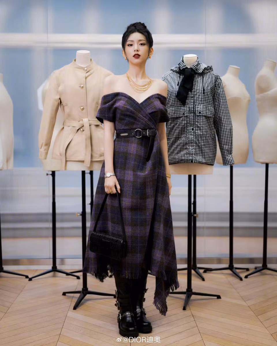 Châu Dã mặc mẫu đầm kẻ trễ vai đến từ BST Cruise 2025. Nữ đại sứ kết hợp cùng trang sức tông vàng gold dòng My Dior, Galons Dior. Việc đại sứ khu vực Trung Quốc Châu Dã và đại sứ toàn cầu Địch Lệ Nhiệt Ba cùng diện thiết kế của BST Cruise 2025 làm dấy lên một số bàn tán về đãi ngộ của hai nữ đại sứ.