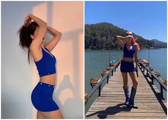 Màu xanh cobalt là màu của sự thanh lịch, cổ điển, kiêu sa và có hơi thở của hoàng gia. Những bộ trang phục màu xanh cobalt sẽ giúp bạn trở nên sang trọng, rực rỡ và sành điệu. Màu xanh cobalt là một trong những màu sáng nhất trong gam màu xanh, vì vậy Quỳnh Anh Shyn và Chi Pu càng nổi bật, ấn tượng hơn trong chiếc váy body 2 mảnh này. Tuy nhiên, sự kết hợp giữa trang phục xanh cobalt cùng màu tóc hồng giúp Quỳnh Anh Shyn "ăn điểm" hơn, bởi sự phá cách, có chút nổi loạn cũng như quyến rũ hơn so với "sự an toàn" của Chi Pu.