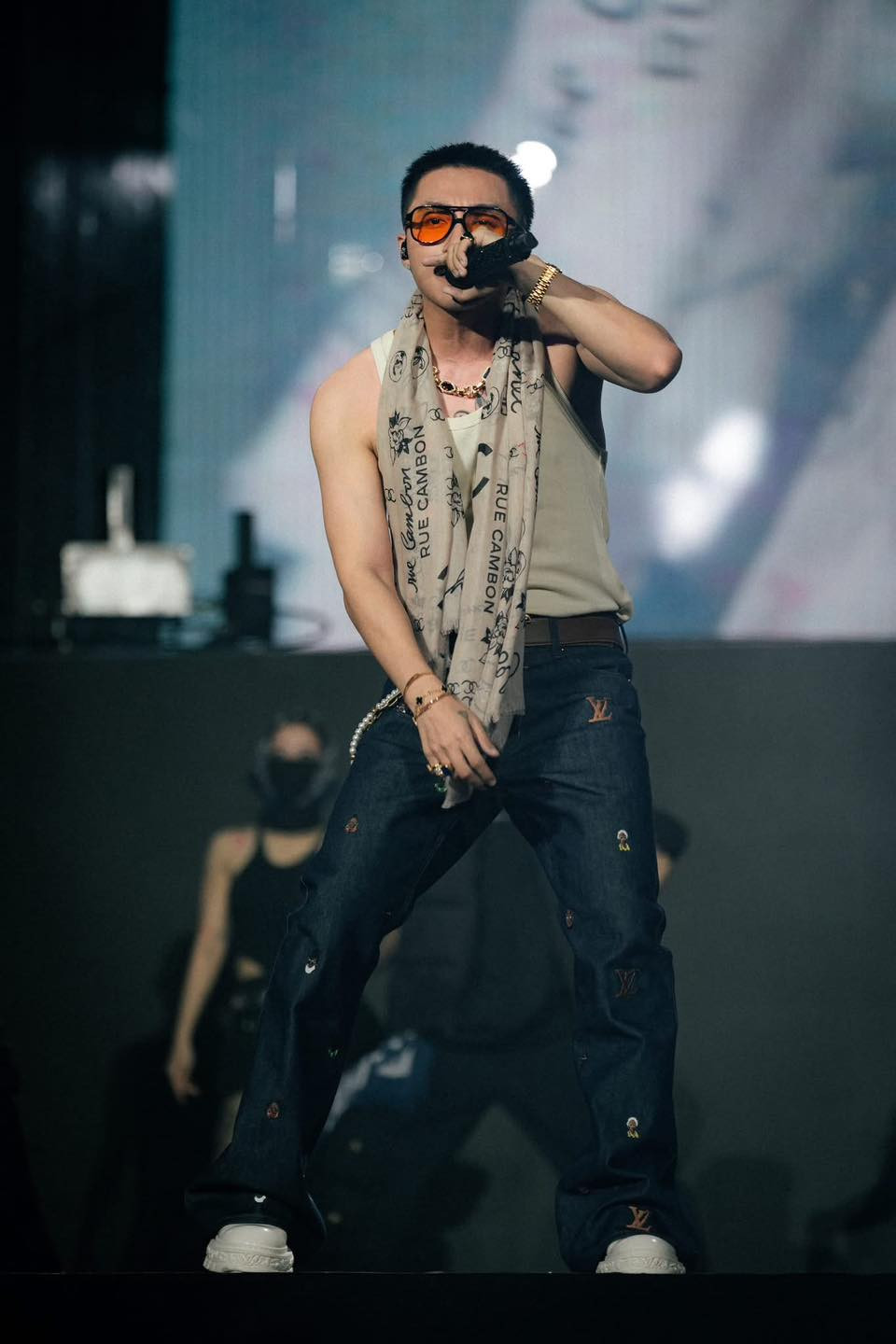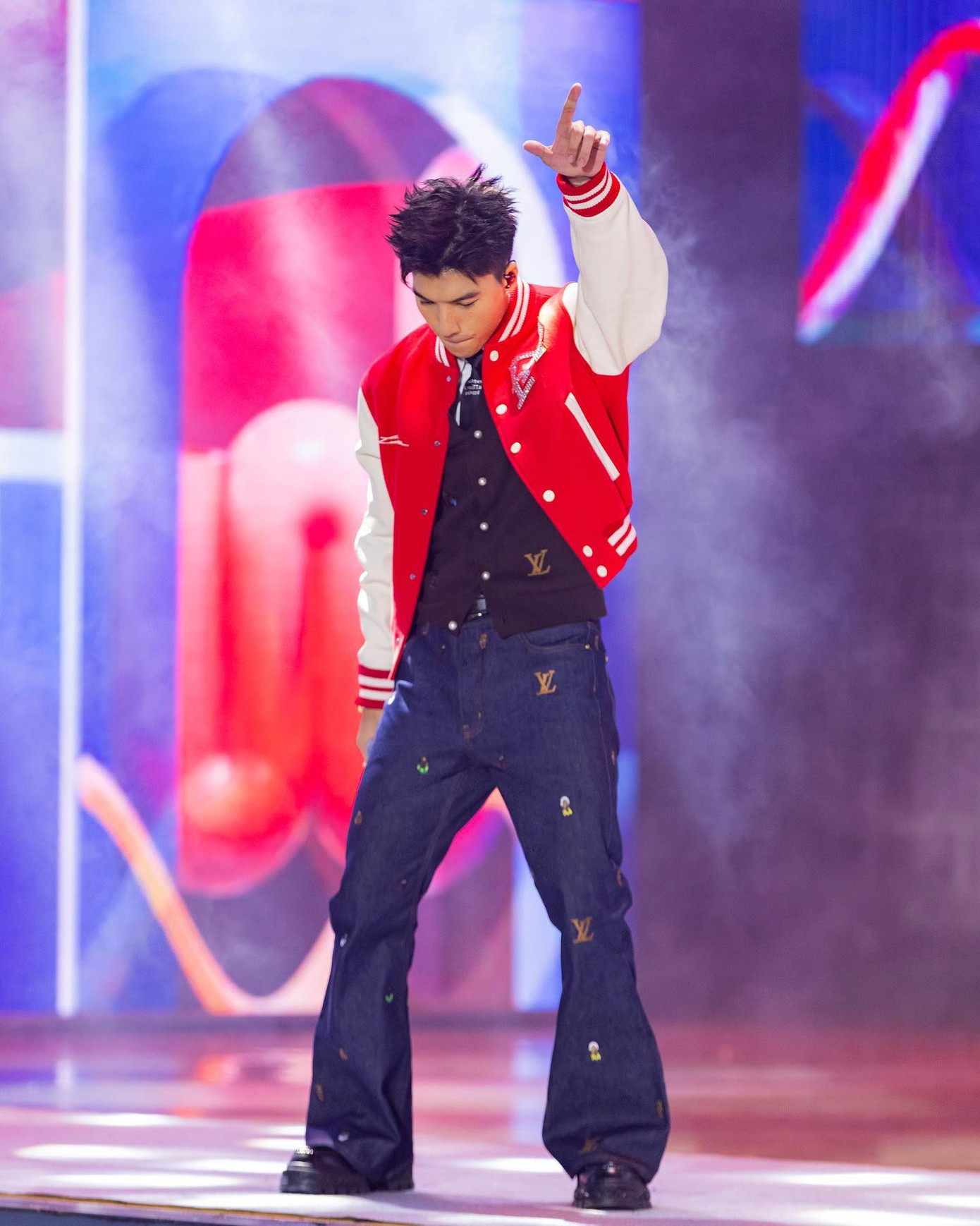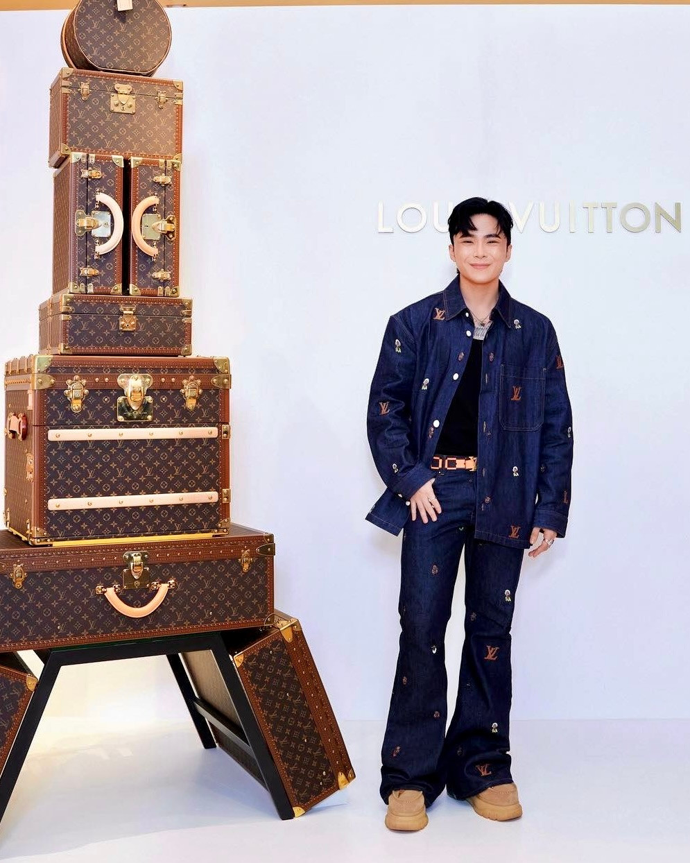 Sơn Tùng M-TP diện các thiết kế của nhà mốt Louis Vuitton. Set trang phục denim bao gồm áo khoác và quần ống loe thêu họa tiết thương hiệu và hoạt hình đến từ BST Xuân Hè 2024. Đây là BST đánh dấu màn ra mắt của Pharrell Williams với tư cách tân Giám đốc sáng tạo của thương hiệu.