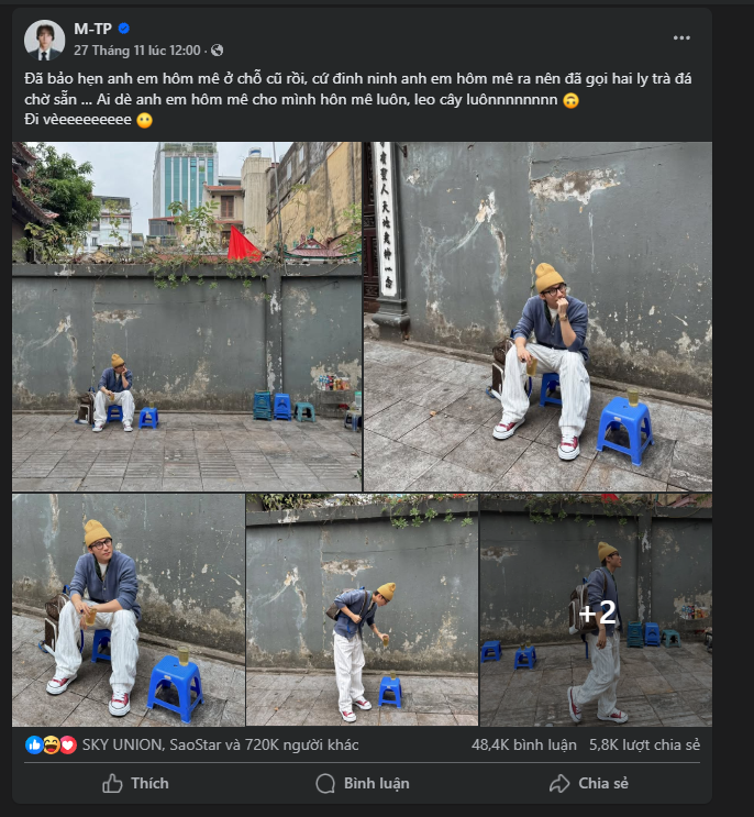 Cuối tháng 11, Sơn Tùng M-TP "hẹn hò" khán giả trong một sân khấu tại Thủ đô: "Ngày mai ai có thể ra uống trà đá vỉa hè với Sơn Tùng nào?". Sau đó, nam ca sĩ gây bất ngờ khi thực sự "check-in" tại quán trà đá. Loạt hình ảnh được anh đăng lên đã hút lượt tương tác khủng, tạo ra hiệu ứng khiến các bạn trẻ ồ ạt đến check-in để "cheap moment" cùng thần tượng.