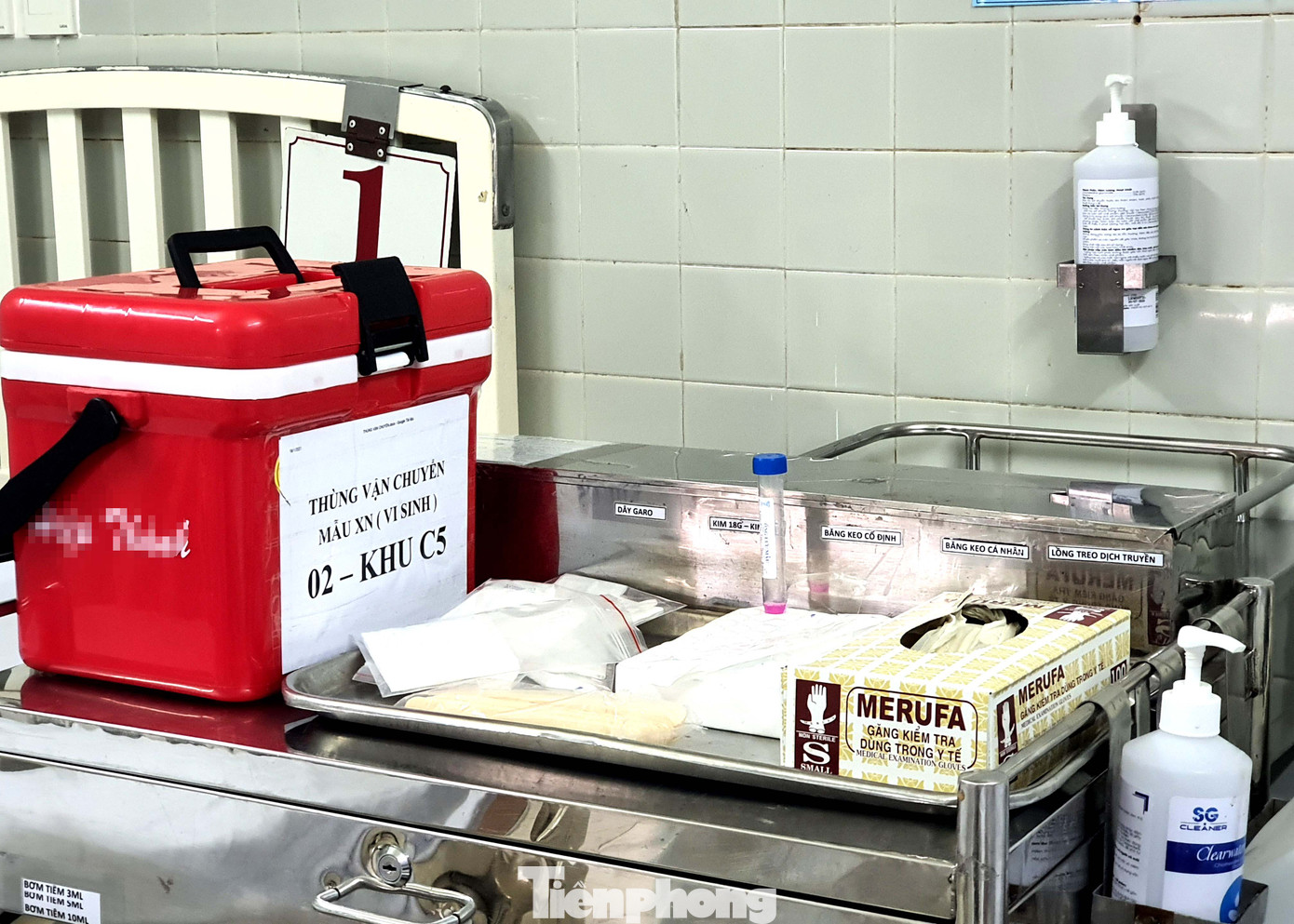 Các mẫu dịch mũi, họng sau khi được lấy sẽ cho vào thùng kín, khử khuẩn trước khi chuyển giao cho khoa Sinh Hóa thực hiện xét nghiệm.