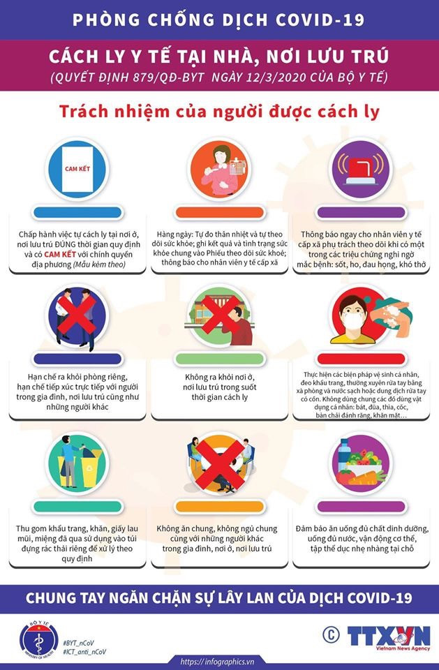 TPO - Bộ Y tế đã có những khuyến cáo chi tiết về việc cách ly tại nhà, ở nơi lưu trú, những việc đối tượng cách ly, gia đình và khu chung cư, nơi lưu trú của đối tượng cách ly cần biết để tuân thủ nghiêm ngặt nhằm phòng chống dịch Covid-19.