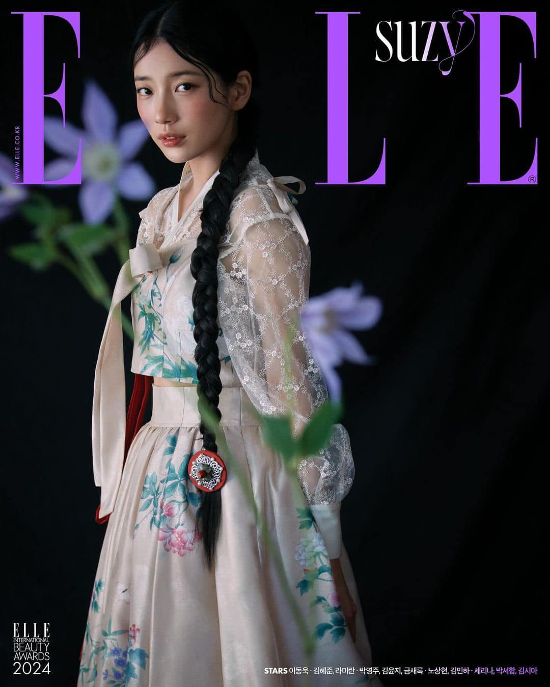 Trang bìa ELLE Hàn số Khai niên lần đầu tiên trong lịch sử thành lập xuất hiện trang phục truyền thống Hàn Quốc - Hanbok. "Nhan sắc quốc bảo" Bae Suzy nhận được cơn mưa lời khen trong lần lên bìa lịch sử này.