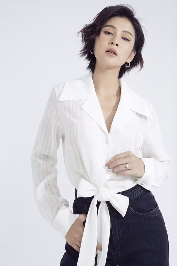 Thu Hoài cũng rất khéo léo khi kết hợp áo blazer cùng quần jeans. Chúng ta đều biết rằng, áo blazer là món đồ “thần thánh” giúp bạn biến quần jeans, áo thun năng động trở nên thanh lịch hơn.