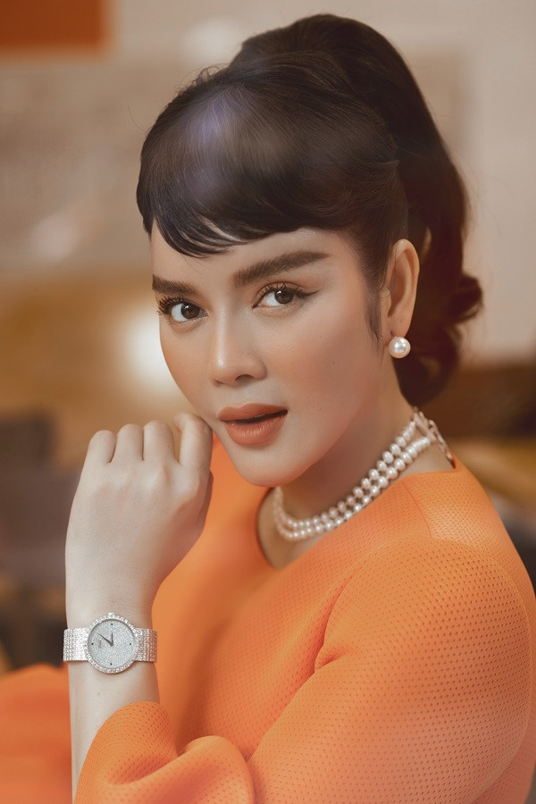 Bên cạnh đó, mái tóc cột phồng cùng lối make up tông cam cũng giúp gương mặt Lý Nhã Kỳ trở nên đậm chất cổ điển.