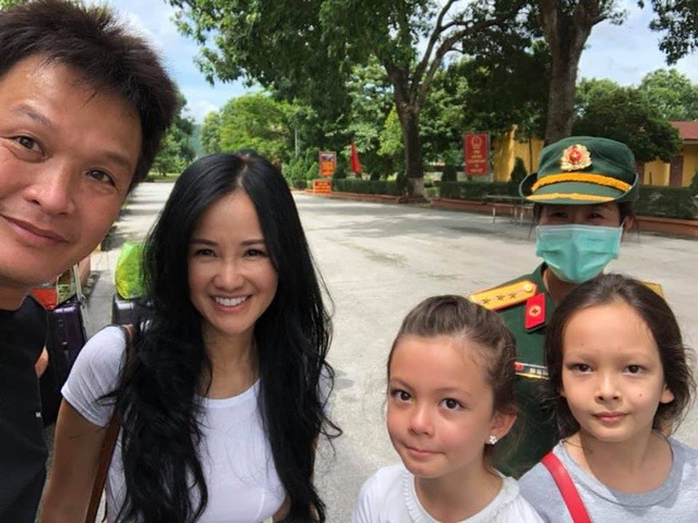 Hồng Nhung và các con trở về sau những ngày cách ly.