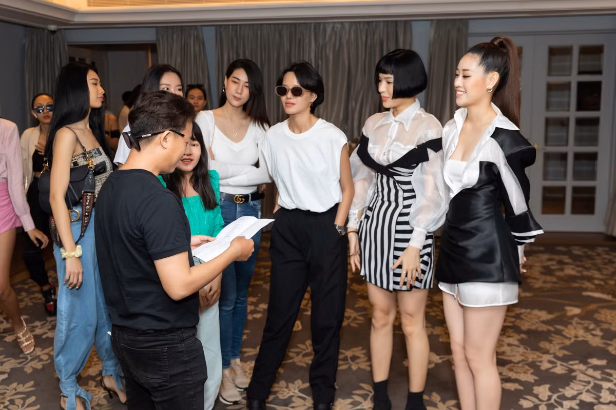 Hoa hậu Khánh Vân diện thiết kế có tông màu trắng đen, khoe đôi chân dài ấn tượng với thần thái ấn tượng. Người đẹp hăng say tập luyện cho show diễn, bởi Khánh Vân là một trong hai nàng thơ chính trong show của Hoàng Hải lần này cùng với ca sĩ Lệ Quyên.