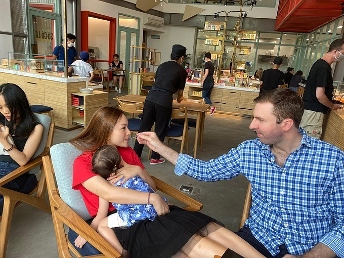 Lan Phương được chồng Tây chăm sóc ân cần, chu đáo.