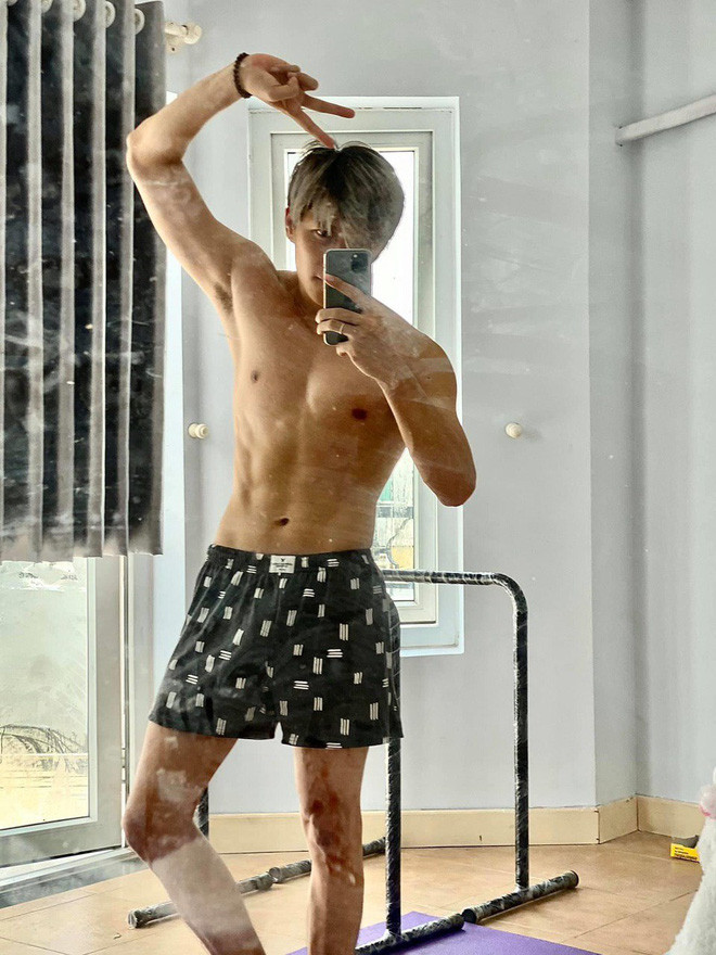 Nam ca sĩ giảm tới gần 10 kg, tranh thủ khoảng thời gian nghỉ dịch, chàng trưởng nhóm The Wings rèn luyện sức khoẻ, nhanh chóng lấy lại thể trạng.