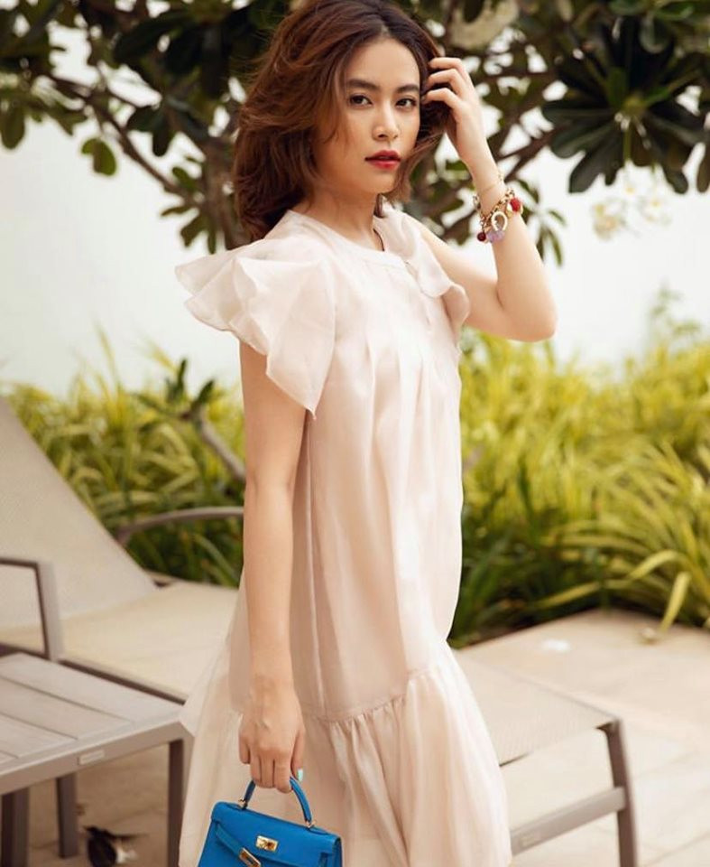Tăng Thanh Hà diện đồ tone xoẹt tone chụp ảnh với thú cưng.