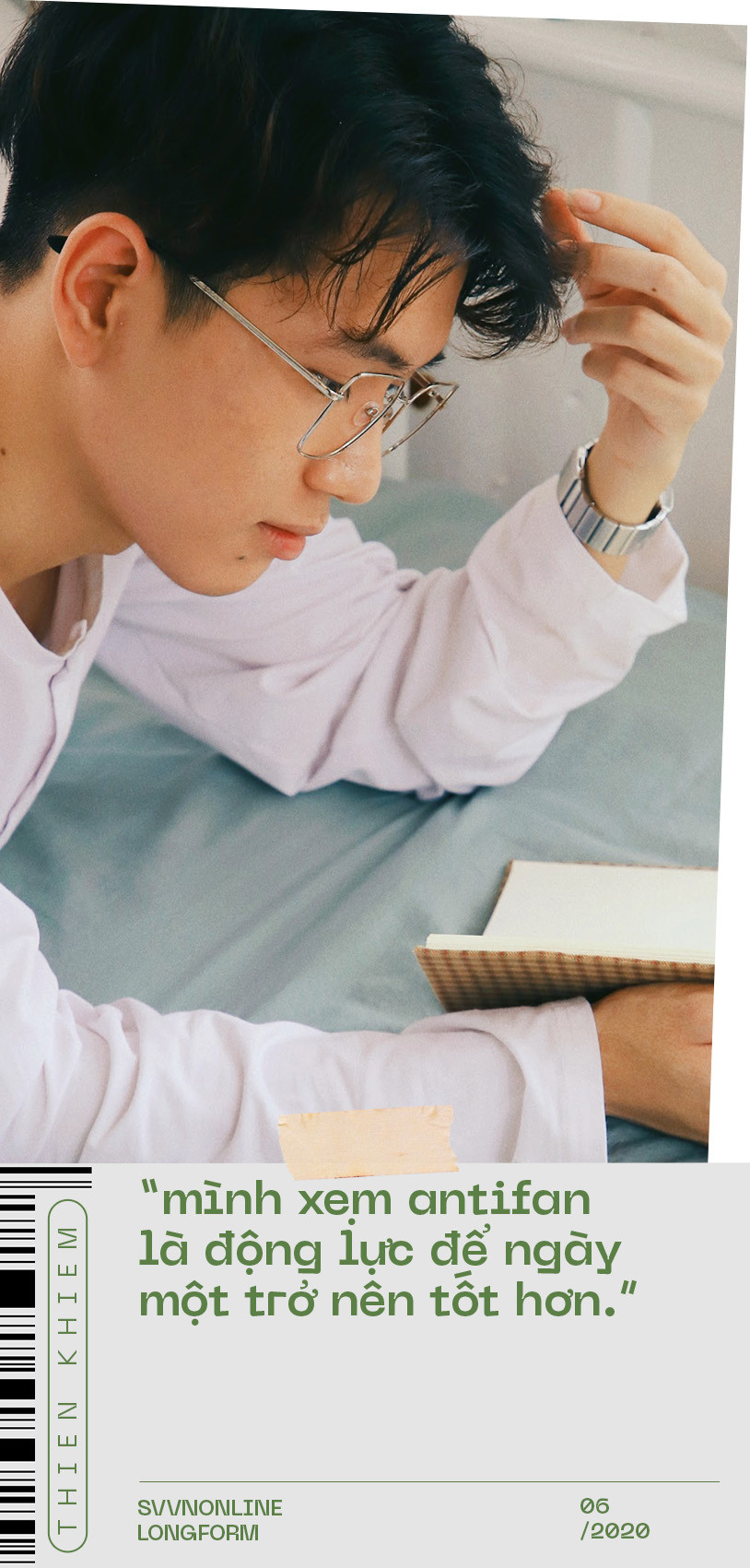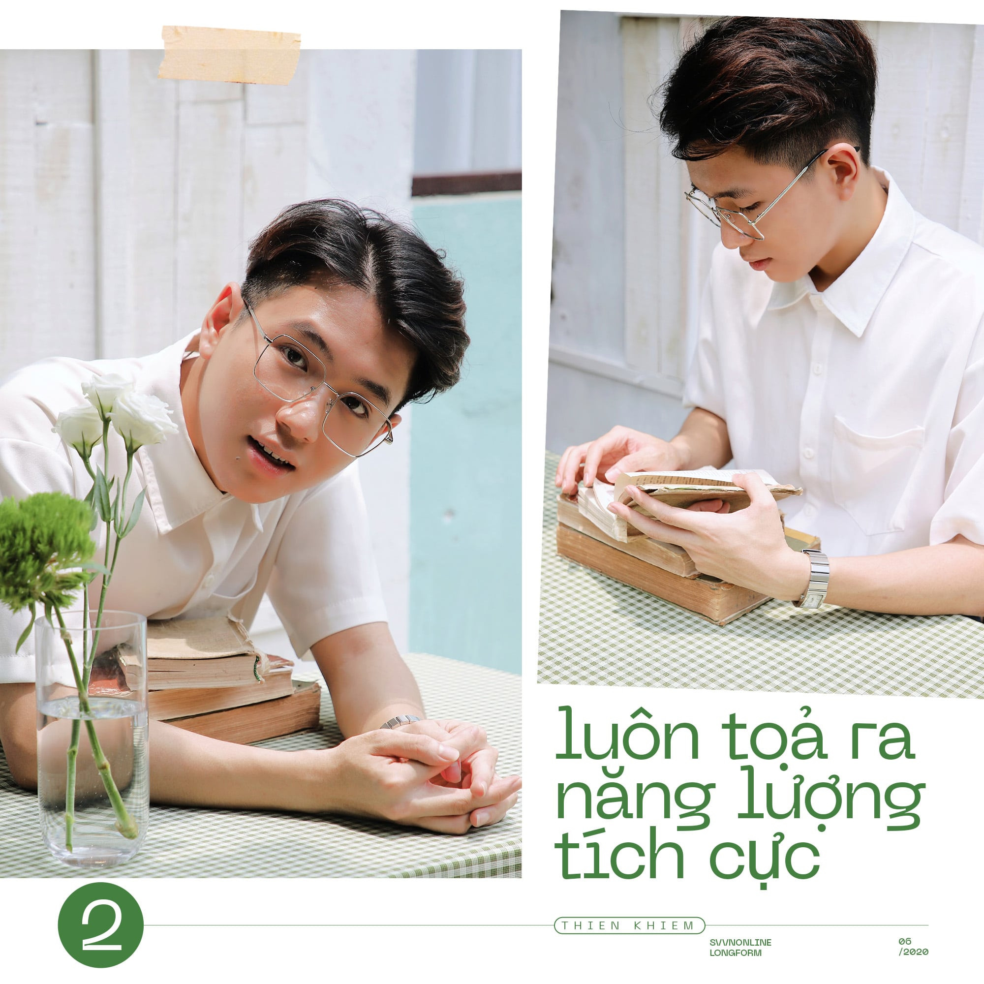 Thiện Khiêm là một chàng trai mà thoạt nhìn thôi đã toát ra được sự thông minh, lanh lợi cũng như tràn đầy năng lượng tích cực. Gặp lại cậu cựu học sinh trường THPT Chuyên Phan Bội Châu sau 1 năm kể từ ngày nổi rần rần trên mạng với danh xưng “hotboy IELTS”, tôi thấy Khiêm chững chạc hẳn cả về ngoại hình lẫn suy nghĩ. Không cần bàn thêm về những thành tích học hành đỉnh như Học bổng toàn phần của Đại học Quốc tế RMIT, 8.0 IELTS; Giải Ba HSG Quốc gia môn Tiếng Anh cùng hàng loạt giải thưởng ở các cuộc thi lớn nhỏ khác… Khiêm giờ đây định hướng bản thân mình theo hình ảnh một chàng trai đa năng, thử sức ở nhiều lĩnh vực khác nhau từ MC đến lấn sân sang cả Du lịch, ẩm thực.