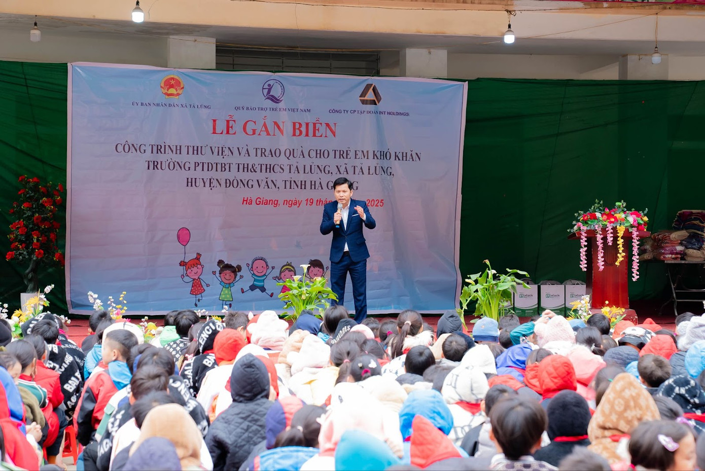 Ngày 19/03/2025, chương trình “Lễ gắn biển công trình thư viện và trao quà cho trẻ em khó khăn Trường PTDTBT Tiểu học & THCS Tả Lủng, xã Tả Lủng, huyện Đồng Văn, tỉnh Hà Giang” đã diễn ra trong không khí trang trọng và đầy xúc động. Sự kiện đánh dấu cột mốc quan trọng trong hành trình mang tri thức đến với trẻ em vùng cao, mở ra cánh cửa mới cho các em tiếp cận với nguồn sách vở và kiến thức quý giá.