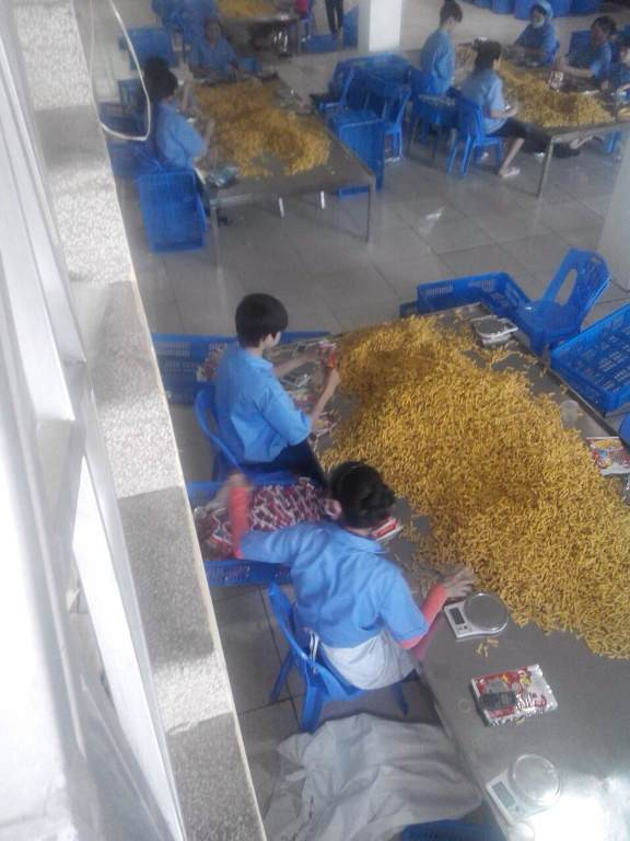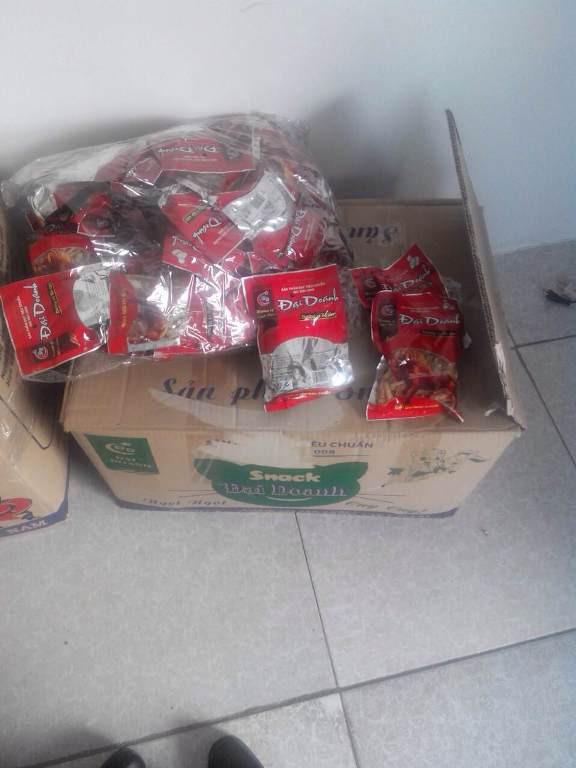Tại đây, đoàn công tác phát hiện toàn bộ số bim bim do công ty này sản xuất, không có giấy chứng nhận An toàn thực phẩm. Ngoài ra, doanh nghiệp cũng không xuất trình được giấy tờ chứng minh nguồn gốc, xuất xứ của 1 tấn nguyên liệu phụ gia.