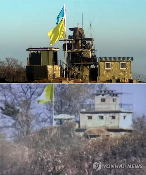 Cờ vàng được treo tại các trạm gác của Hàn Quốc và Triều Tiên. Ảnh: Yonhap