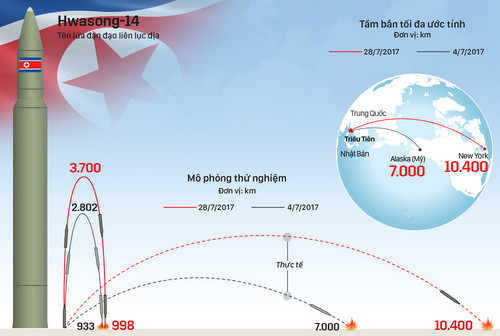 Tên lửa Hwasong-14 bị nghi là sử dụng công nghệ Ukraine. Bấm vào ảnh để xem đầy đủ.