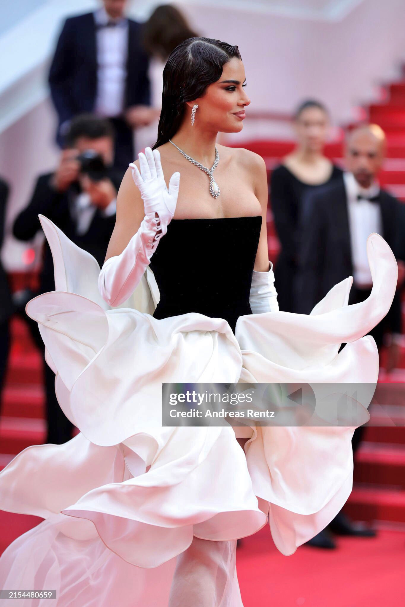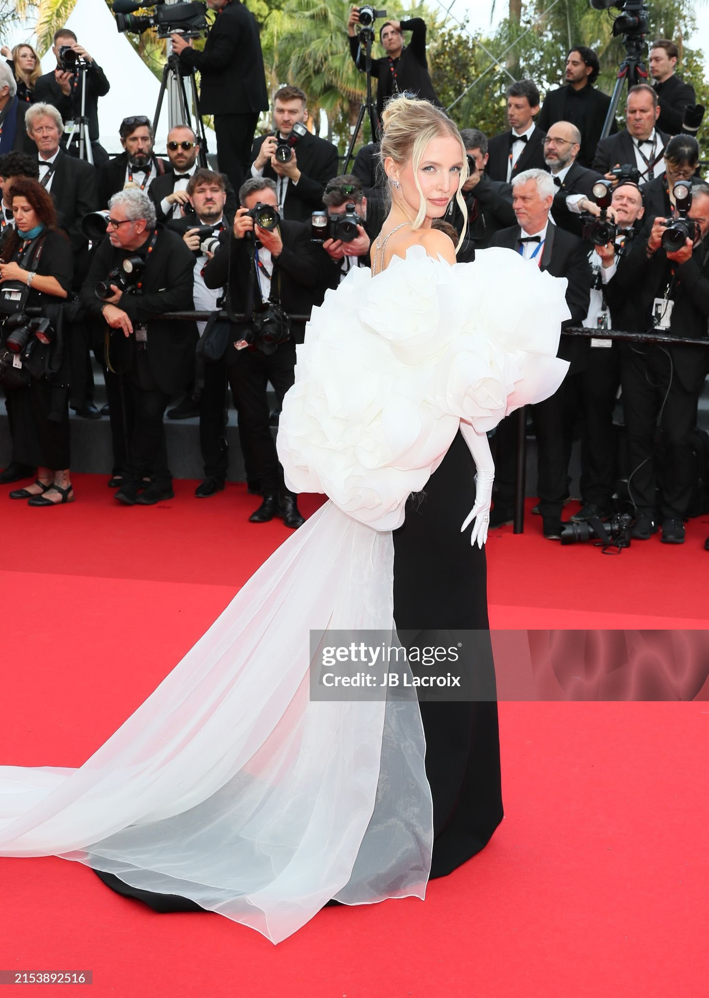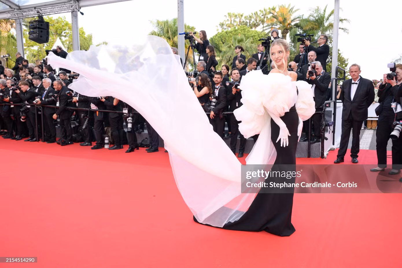 Fashionista Leonie Hanne tích cực lăng xê các thiết kế nữ tính, tông màu đen trắng trong mùa Cannes 2024.
