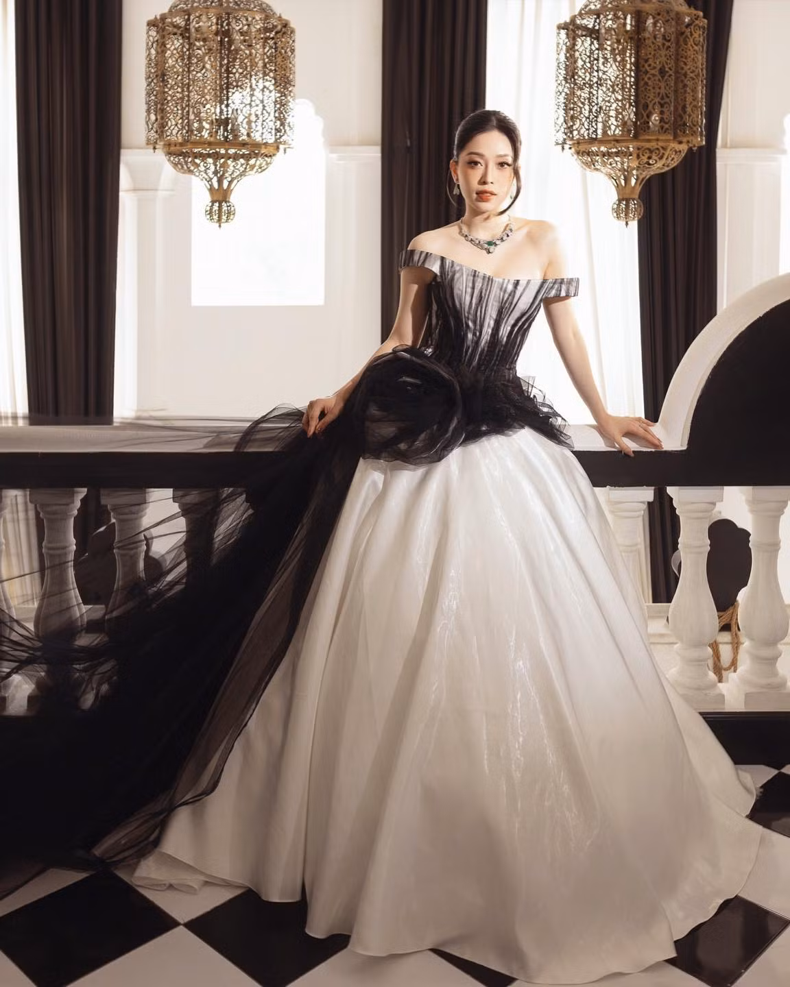 Trang phục tông đen trắng, tạo điểm nhấn ở phần eo của Ariadna Gutiérrez - Á hậu 1 Hoa hậu Hoàn vũ 2015 thu hút sự chú ý. Đây là phục trang cao cấp (Haute Couture) thuộc BST Thu Đông 2023 của thương hiệu Stéphane Rolland.