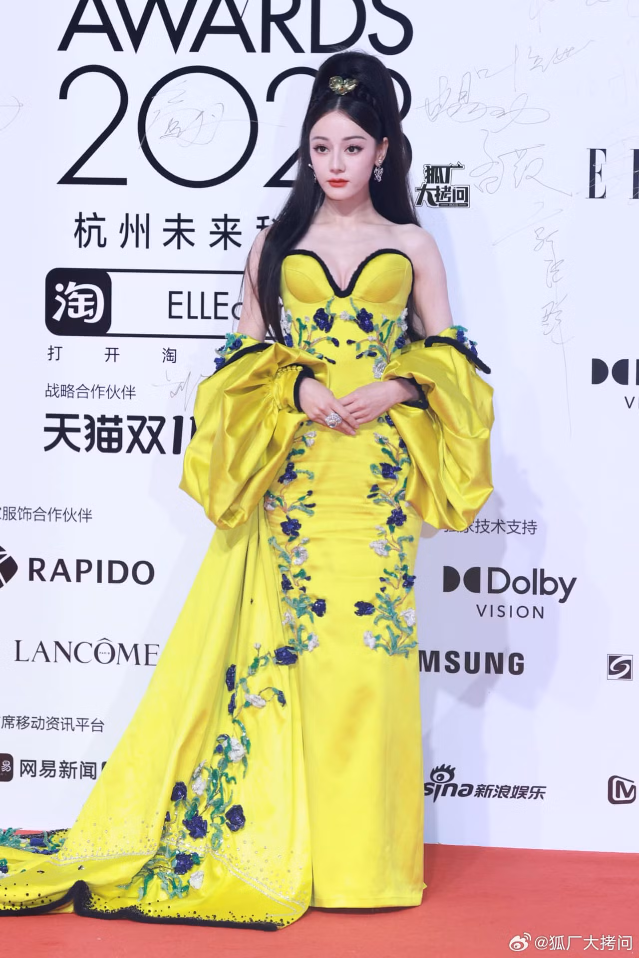 Tâm điểm của sự kiện năm nay thuộc về Địch Lệ Nhiệt Ba. Chỉ ít phút sau khi nữ minh tinh xuất hiện, diện mạo cổ điển sang trọng của cô tại thảm đỏ ELLE đã trở thành đề tài bàn tán lọt top 1 hot search Weibo.