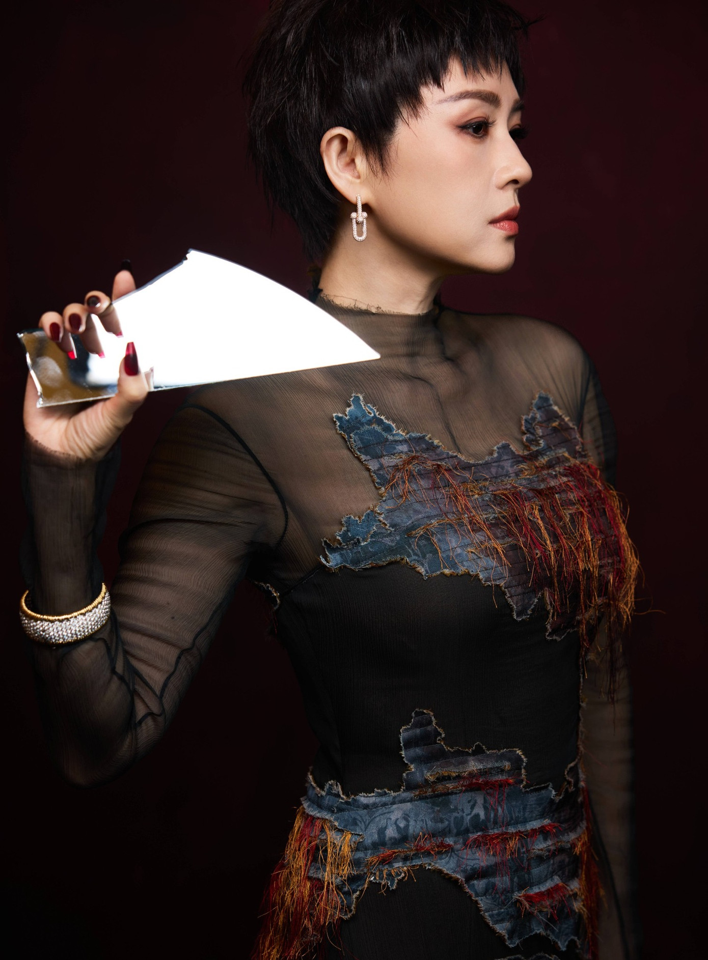 Chương Tử Di gây chú ý khi xuất hiện trên thảm đỏ khai mạc Liên hoan phim Quốc tế Thượng Hải lần thứ 27 với mái tóc tém cá tính. Mỹ nhân Hoa ngữ diện thiết kế thuộc BST Xuân Hè 2025 của thương hiệu Keyichuan, trang sức cao cấp từ Tiffany & Co..