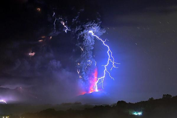 Bức ảnh chụp lại một cột tro bụi và khói khổng lồ có hình dáng như một con người, khiến các bô lão địa phương ở Chile tin rằng đây chính là dấu hiệu chứng tỏ sơn thần đã nổi giận và cho núi lửa phun trào sau 40 năm ngủ yên.