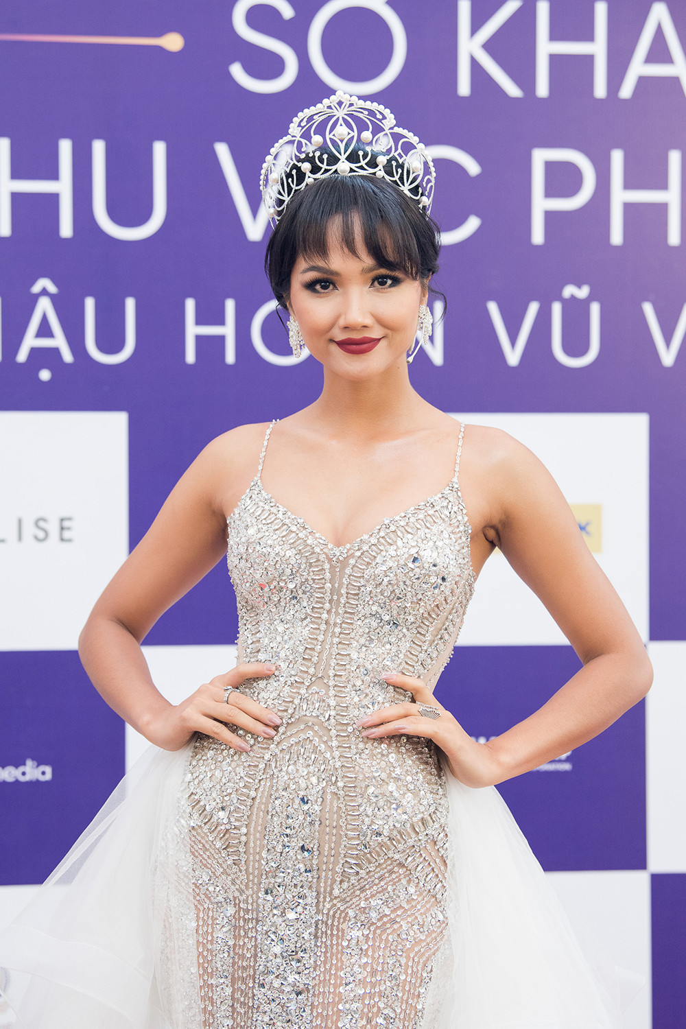 H'Hen Niê lại xuất hiện tựa một cô dâu lộng lẫy với vương miện trên đầu.