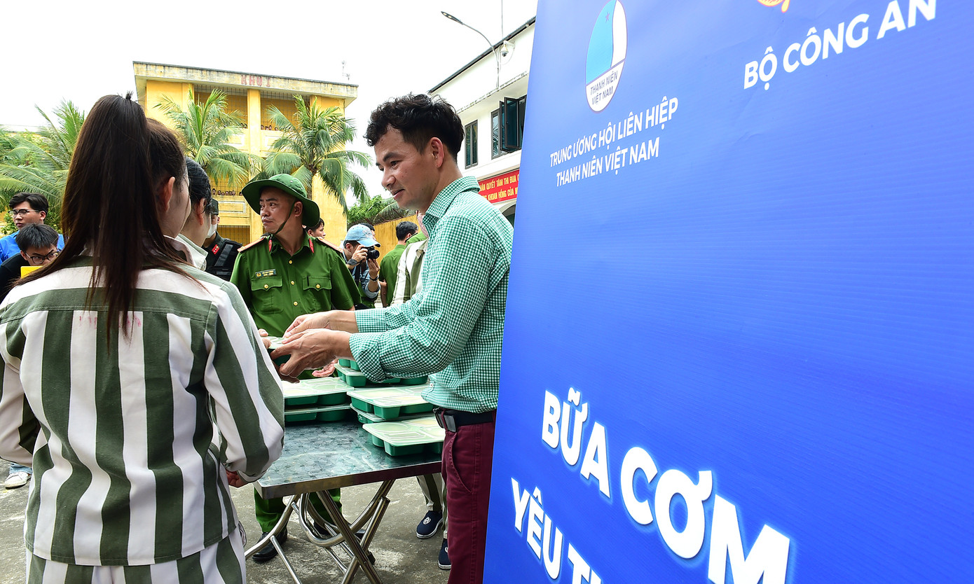 | Chương trình "Bữa cơm yêu thương" tăng khẩu phần bữa ăn cho các phạm nhân trong trại. |