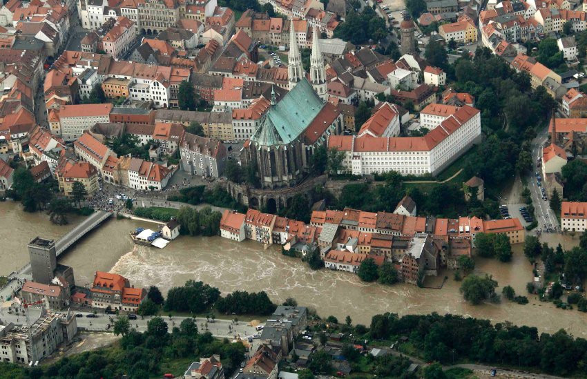 Nước sông Neisse cũng gây ngập các ngôi nhà ven sông ở thành phố cổ Gorlitz của Đức.