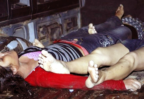 | Không khí tang tóc bao trùm khi xác các nạn nhân được tập trung lại. |