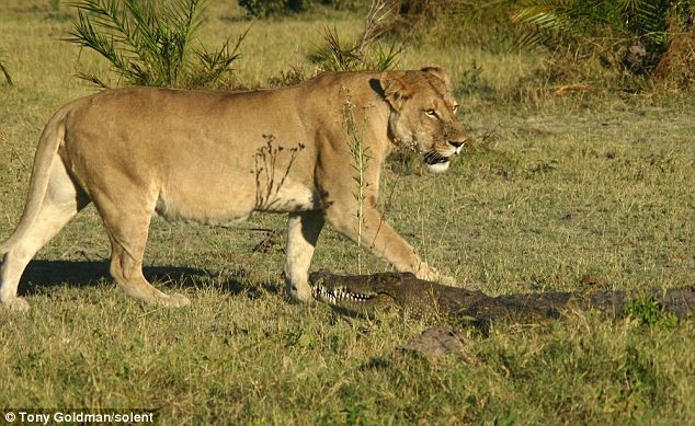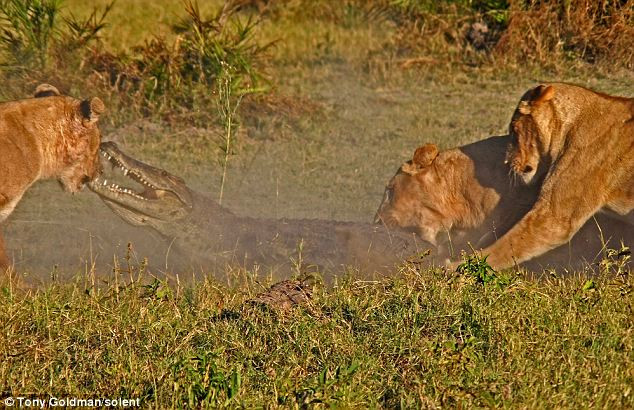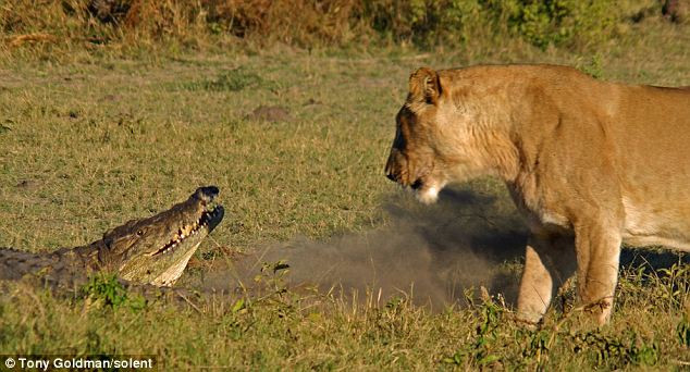 Cuộc đụng độ giữa hai loài ăn thịt hung dữ xảy ra khi con cá sấu định ăn thịt một con sư tử con đang tách khỏi bầy. Ngay lập tức, sư tử mẹ nhìn thấy mối nguy hiểm, liền xông vào tấn công lại cái sấu.