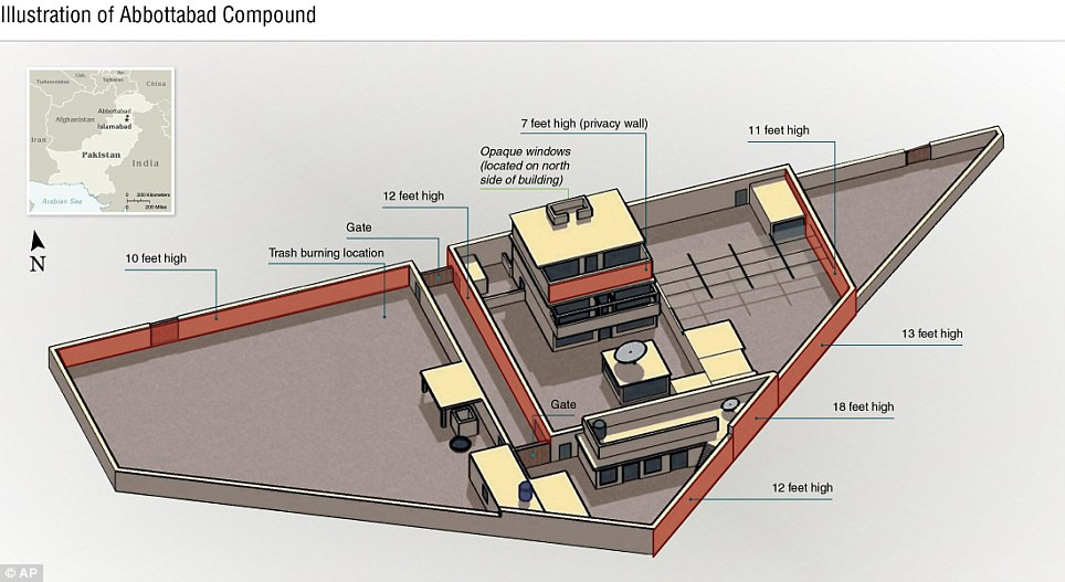 Sơ đồ phác thảo chiến dịch tiêu diệt Osama Bin Laden - Ảnh: Daily Mail