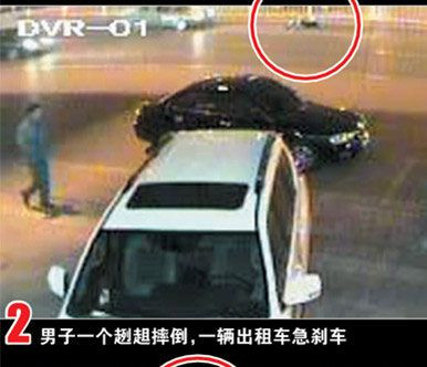 4 người qua đường phát hiện ra người đàn ông, một người trong số họ đang nói chuyện điện thoại, ba người còn lại vẫy tay báo hiệu cho những xe đi sau là có người nằm trên đường. Tuy nhiên, một xe taxi vẫn cán qua người đàn ông.