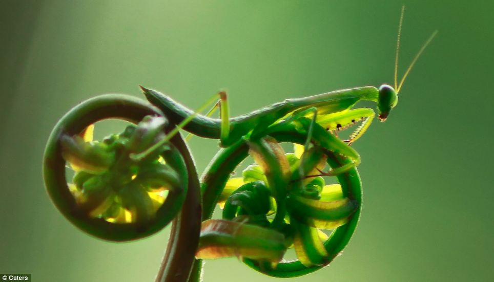 "Tôi đã tập trung vào chụp ảnh bọ ngựa khi tôi nhận thấy ngọn cây dương xỉ cuộn tròn ở gần đó. Ngay lập tức tôi nghĩ rằng nó trông giống như một chiếc xe đạp, nhưng tôi không thể tin mình may mắn khi nhìn thấy bọ ngựa bò và leo lên cây. Tôi rất vui mừng nhưng cũng đã lo lắng bọ ngựa sẽ di chuyển khi tôi chưa kịp ghi lại hình ảnh đó.”