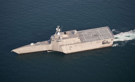Tàu được thiết kế ba thân độc đáo, khiến nó có thể chạy với vận tốc 74km/h. USS Independence được chuyển giao cho Hải quân Mỹ vào cuối năm 2009.
