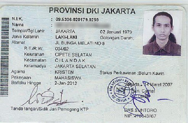Từ năm 17 tuổi, mỗi công dân Indonesia đi làm một chứng minh thư có gắn một con chip ghi các dữ liệu nhân trắc bao gồm dấu vân tay và hình dạng đồng tử của mắt. Khi kết hôn, người Indonesia phải đi làm lại chứng minh thư vì tình trạng kết hôn được quy định phải ghi trên tấm thẻ này.