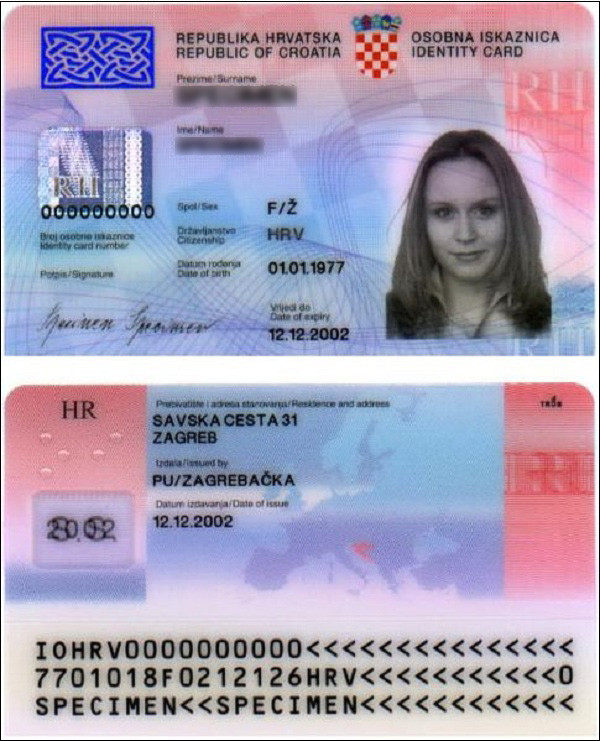 Croatia: chứng minh thư tại nước này được ghi bằng hai thứ tiếng (tiếng Croatia và tiếng Anh) và không yêu cầu ghi tên bố và mẹ. Người Croatia nhận chứng minh thư lần đầu năm 15 tuổi.