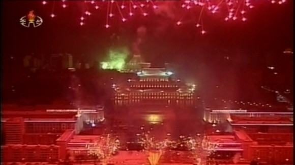 | Người dân Triều Tiên hân hoan xem pháo hoa đón mừng năm mới. |
