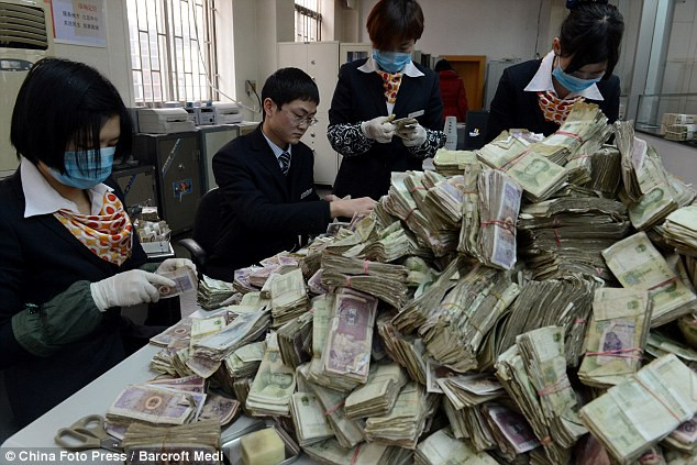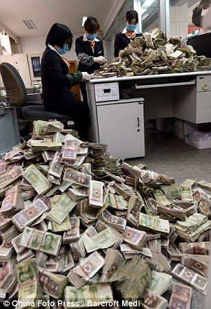 Dailymail cho hay, 3 nhân viên của Ngân hàng Trịnh Châu đã phải mất 3 ngày nhưng mới chỉ đếm được 11.500 NDT.