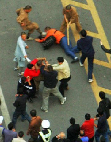 Một số nhà sư khác thậm chí còn đánh cô bằng các dụng cụ xây dựng ở hiện trường. Khi nữ du khách định chụp ảnh lại những hành vi này, họ nổi giận và ném đá vào cô.