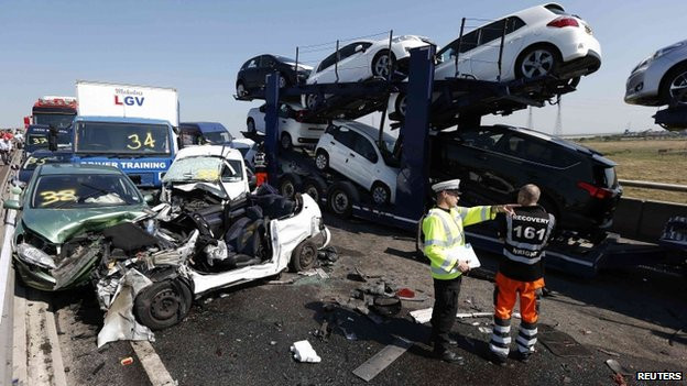 Theo BBC, vụ tai nạn xảy ra vào lúc 7 giờ 15 (giờ địa phương) ngày 5/9 do sương mù dày đặc, làm che mất tầm nhìn của các tài xế.