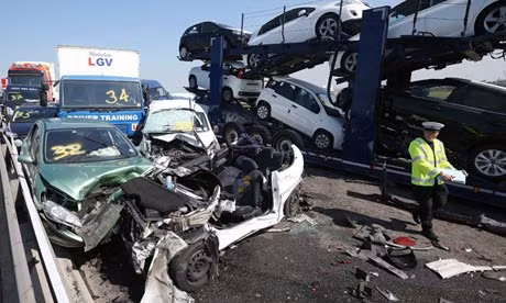Theo báo cáo, 130 chiếc xe đã bị vướng vào vụ tai nạn liên hoàn này, bao gồm xe hơi, xe tải. Vụ tai diễn ra trong khoảng 10 phút và các xe liên tục đâm vào nhau.