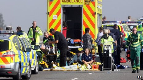 Đội cứu thương đã ngay lập tức có mặt tại khu vực này để cấp cứu những người bị thương. Theo báo cáo của cơ quan y tế, 35 người thương vong trong vụ tai nạn liên hoàn này, trong khi theo cơ quan chức năng khu vực Kent, đã có 60 người bị thương và đang được điều trị tại bệnh viện.Không có báo cáo về người thiệt mạng.