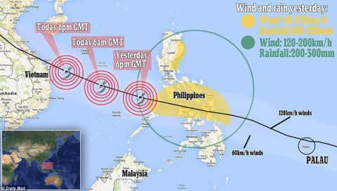 Cùng chung dự báo với các chuyên gia khí tượng trong nước, nhiều hãng truyền thông nước ngoài cũng cho rằng, siêu bão Hải Yến sẽ đổi hướng tâm bão từ miền Trung đổ thẳng ra miền Bắc Việt Nam.