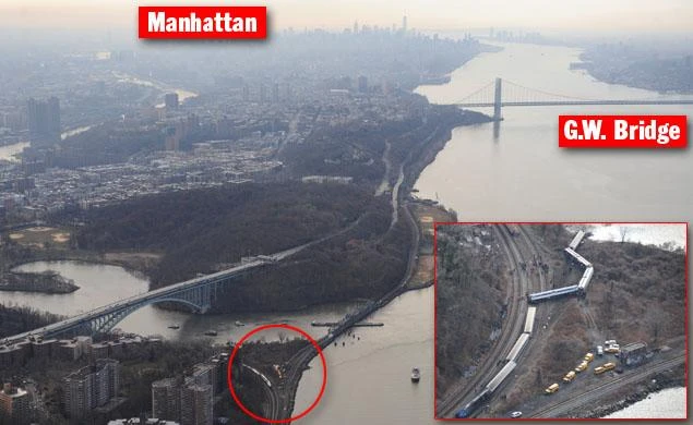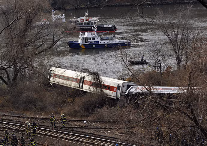 Con tàu trật bánh khi đang đi qua khúc cua ven sông, khi các tàu cần giảm vận tốc xuống còn 48 km/h. Đội cứu hộ dự định đem cần trục trong đêm để cẩu toa tàu bị lật, vì có khả năng vẫn có người ở dưới.