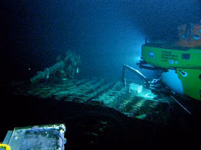 | Tàu ngầm I-400 nằm ở độ sâu 700 m dưới biển. |