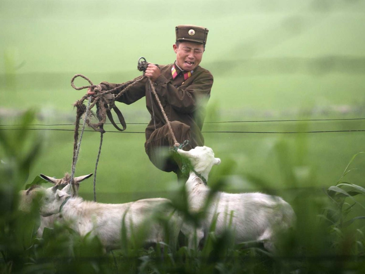 9. Lính Triều Tiên tức giận đá dê