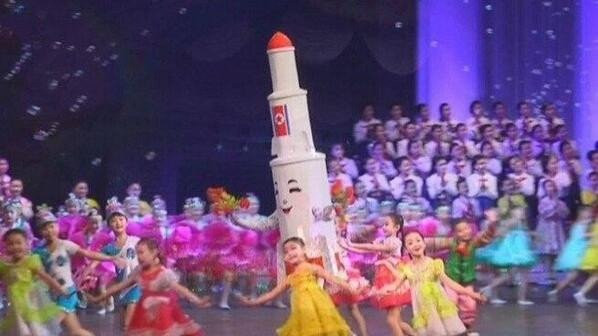 Triều Tiên luôn tự hào về chương trình tên lửa của mình. Trong hình là tên lửa Taepo-Dong II trong một chương trình ca nhạc dành cho thiếu nhi.