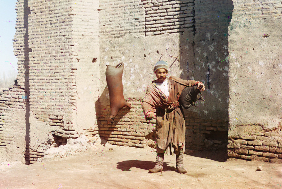 Ảnh chụp người đàn ông bán nước dạo ở Samarkand, nay thuộc Uzbekistan, năm 1910.