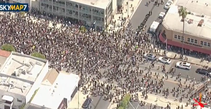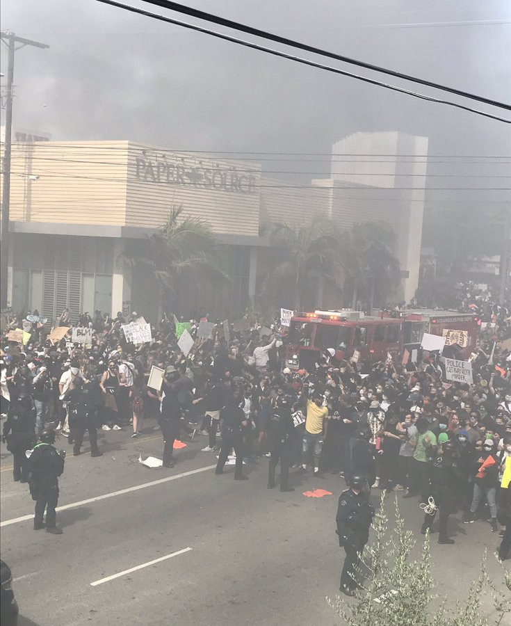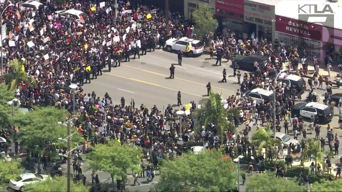 Theo RT, các cuộc biểu tình chiều 30/5 - được tổ chức bởi nhóm Black Lives Matter ở Los Angeles - mới đầu rất ôn hòa.