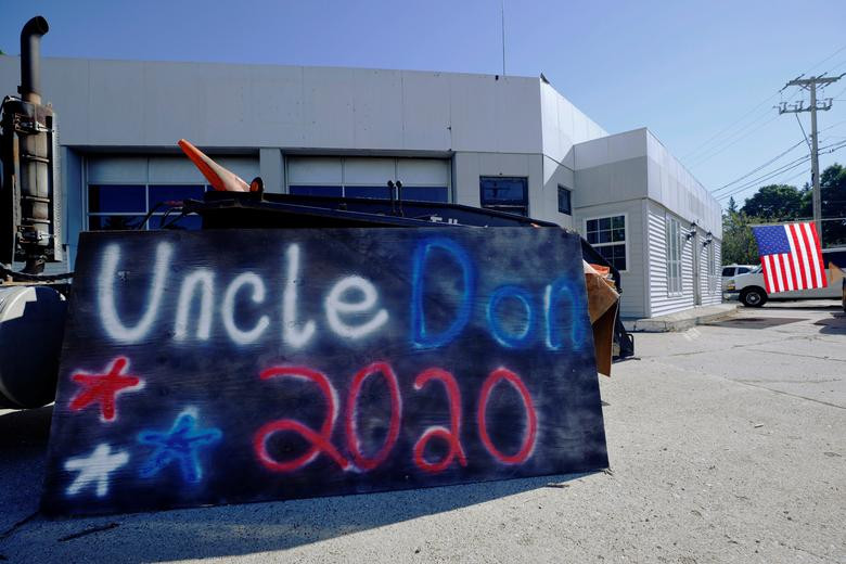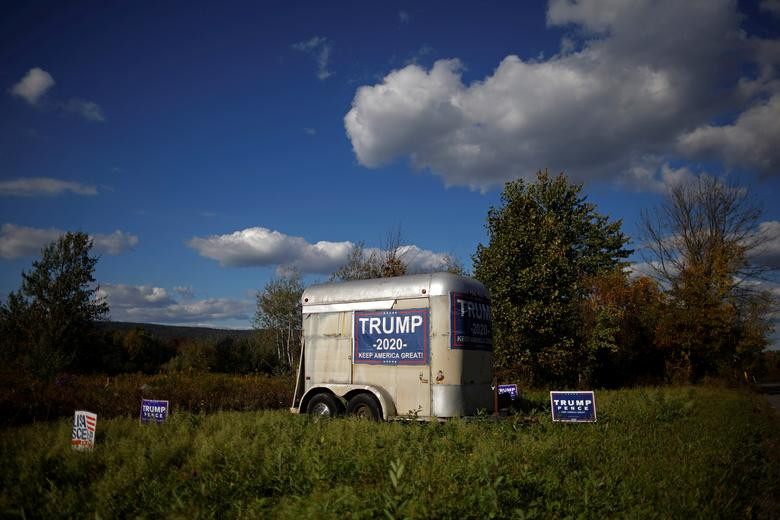 Một chiếc cabin gắn biểu ngữ ủng hộ ông Trump đứng bên vệ đường ở Wind Gap (bang Pennsylvania).